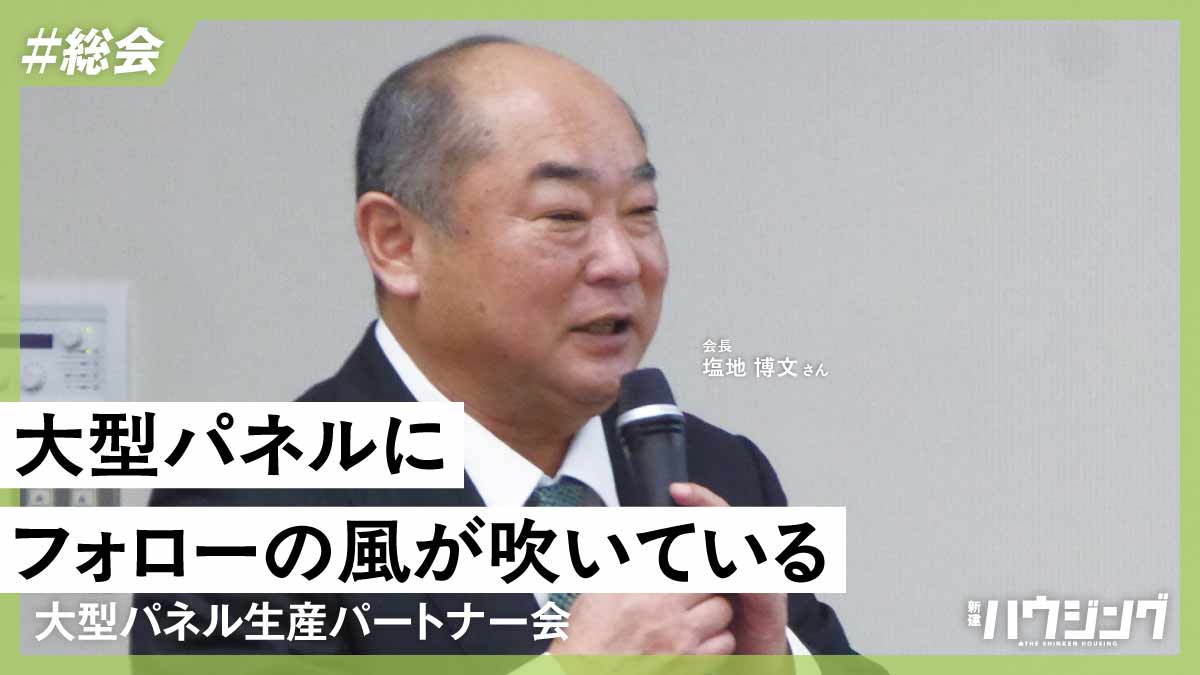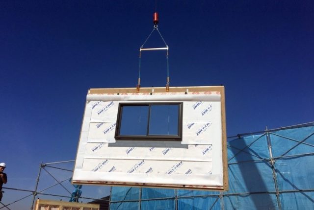耐震性や省エネ性能の向上など高品質住宅へのニーズが高まるなか、現場では熟練工の不足や高齢化が進行しており、木造建設のプレハブ化が急務となっている。同社は、構造材・面材・間柱・断熱材・サッシ・一次防水までを一体化させたパネルを工場生産することで、大工の工数とコストを削減。1日での上棟を可能にし、大幅な現場での工期短縮を実現した。今回、施工実験を公開することで、普及を目指す。