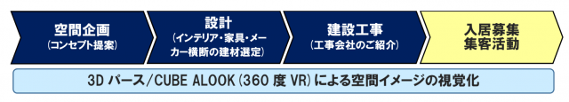 野原住環境(東京都新宿区)は、不動産事業主やホテルなどの商業施設を手掛けるデベロッパー向け空間トータルプロデュースサービス「CUBE」で、12月から3Dパースによる360度VRの作成サービス「CUBE ALOOK」を開始する。