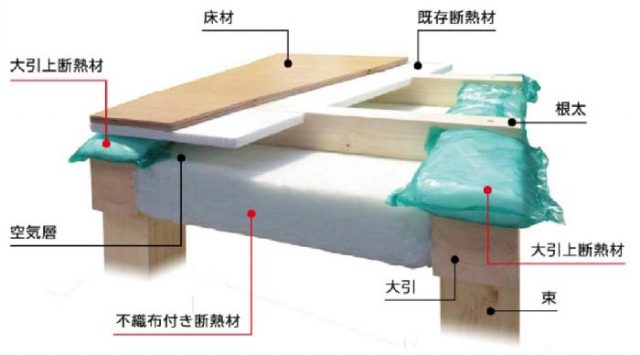 独自技術による断熱リフォームの例(床下)。床を解体せずに工事が可能