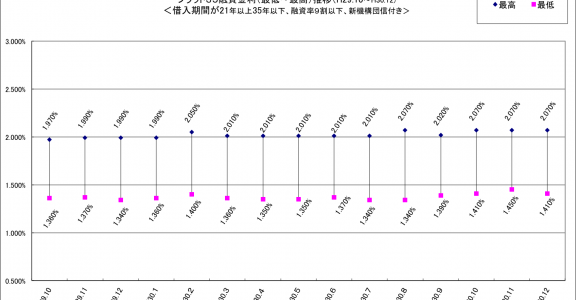 住宅金融支援機構(東京都文京区)が12月3日発表した、各金融機関の長期固定金利住宅ローン「フラット35」の12月分の金利は、主力の融資率9割以下・借入期間21年以上の場合で、年1.41%~年2.07%だった。最低金利の…