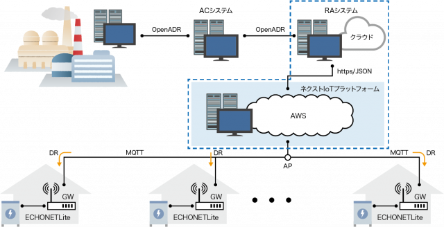 大規模発電所に依存する集中電源型の社会から、分散電源化の社会へ移行の要求が高まるなか、大量のリソースを高速制御することが求められる。同社は、2018年度の「VPP構築実証事業」に参画。IoTプラットフォームは、1万リソース以上の接続対応が可能であり、テスト環境下でリソースの制御において、ビジネスで求められる1秒以内の応答速度が期待できる結果を得たという。IoTプラットフォーム上にアプリケーションを構築することで、収集データを利用したサービスを展開することが可能。今後は、IoTプラットフォームの改良を続け、2019年度のVPP構築実証事業で秒単位の応答時間を達成することを目指す。