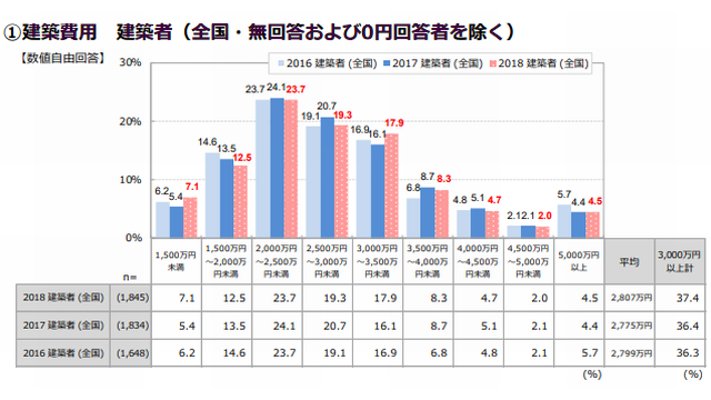 調査期間は、建築者が7月24日~8月4日。検討者が10月17日~10月30日。建築者(1年以内に一戸建てを建築した人)1845人、検討者(今後2年以内に一戸建ての建築を検討している人)1839人を対象にインターネットリサーチを実施した。