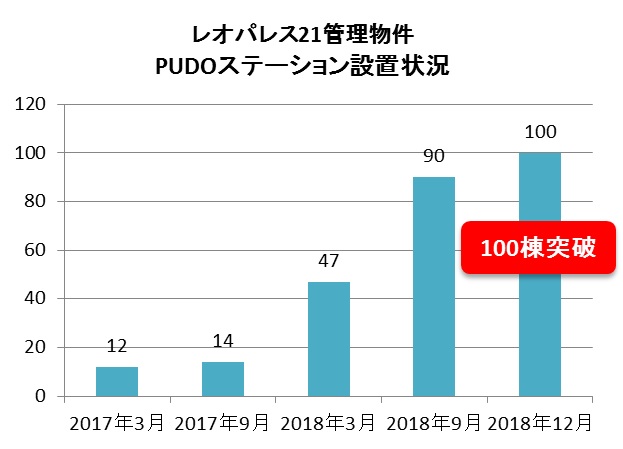 同社は、ネットショッピングの拡大に伴う宅配荷物の増加や宅配事業者の人手不足などの問題解消のため、2016年9月から居住用賃貸物件への「PUDOステーション」導入を開始。「レオパレスエイト守口」(大阪府守口市日光町1-11)への導入で設置棟数が100棟を突破した。首都圏を中心に設置を進めていたが、2018年4月から大阪府・京都市・神戸市に設置エリアを拡大している。大阪府では、現在12棟が設置済み。