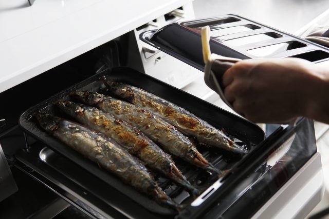 システムキッチンのようにフラットで納まりのいいデザインとし、操作パネルは傾斜をつけて見やすくした。また、グリル庫内の汚れを99.9%カットして、庫内の手入れを楽にする「ココットプレート」を付属する。4万1800円。