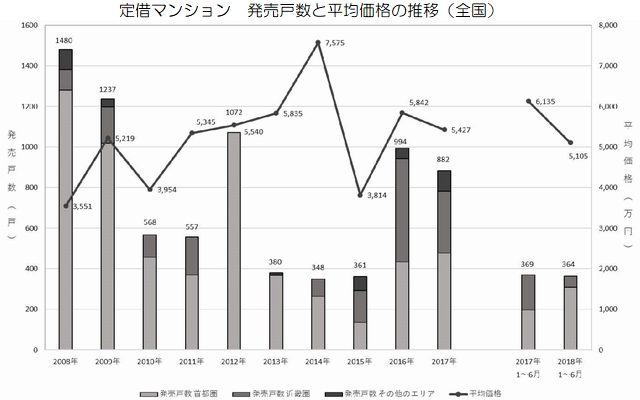 不動産経済研究所(東京都新宿区)は12月11日、全国の定期借地権マンション市場の供給動向調査の結果を発表した。2018年上半期(1~6月)に全国で発売された定借マンションの戸数は364戸で前年同期比5戸減(1.4%減)だった。エリア別では、首都圏が309戸で同111戸増、近畿圏が55戸で同116戸減だった。