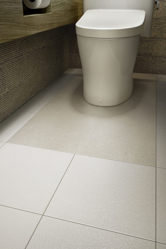 TOTO(福岡県北九州市)は、パブリックトイレの洋式便器下の臭い・尿シミに有効な陶器製床材「ハイドロセラ・フロアPC」を2019年2月1日に発売する。