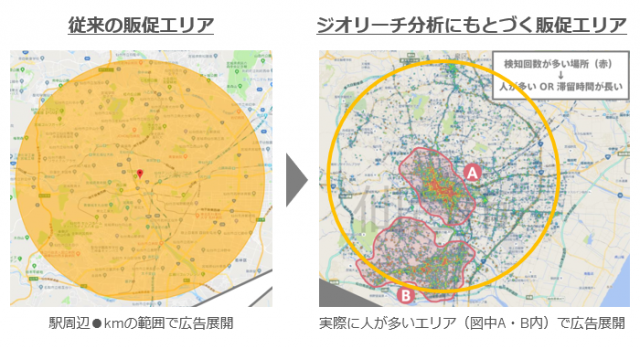 ジオリーチ分析を実施することで実際の生活行動エリアに対して販促が行えるようになるという