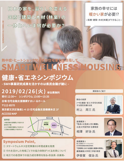 一般社団法人健康・省エネ住宅を推進する国民会議(大阪府四條畷市)は、健康・省エネシンポジウムを2月26日に東京都・住宅金融支援機構すまい・るホールにて開催する。