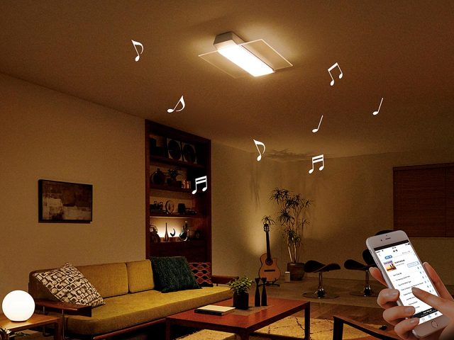 今回は、生活シーンに合わせて「光と音の一括操作」を可能にする機能を専用アプリに追加。あらかじめ設定したあかりのシーンと音楽にワンタッチで切り替えることができる。