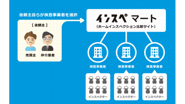 「インスペマート」は、住宅診断を検討するにあたって検査事業者の料金やサービスを比較できるサービス。依頼もオンラインで行える。インスペクター個人ではなく、検査事業者を選択する仕組みにすることで、第三者性を堅持し、瑕疵隠蔽などの可能性を排除しているという。