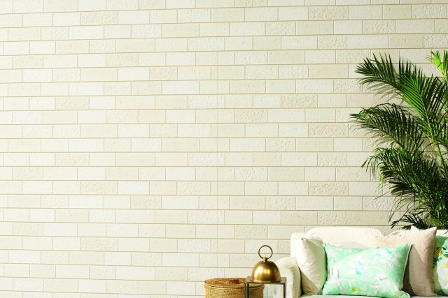 今回の新柄は、18mmの厚みを生かし、深目地で陰影を強調した大割石積柄。天然石を切り出したような質感と3種のテクスチャーの組み合わせが特徴という。