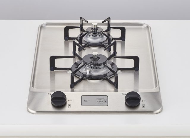 同社としては初の幅30cmの2口ガスコンロ。シンプルで手入れがしやすいステンレス1枚天板を採用。点火・火加減は上面のつまみで操作する。コンパクトでありながら本格調理が可能なため、単身・少人数向けの賃貸住宅に適するという。 8万5000円。