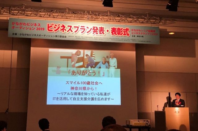 かながわビジネスオーディション2019でのプレゼンテーションの様子