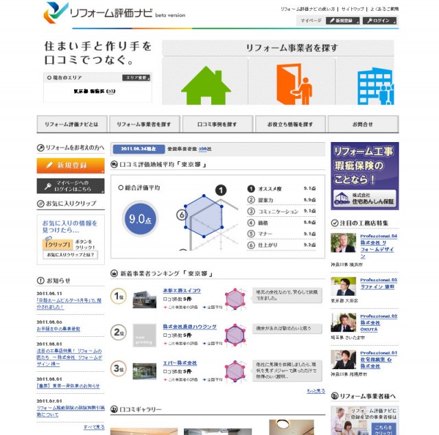 一般社団法人・住まいづくりナビセンターは、4月26日からオープンしているリフォーム業者の比較検討サイト「リフォーム評価ナビ」の登録事業者が24日現在で596社となり、600社まであと4社となった。