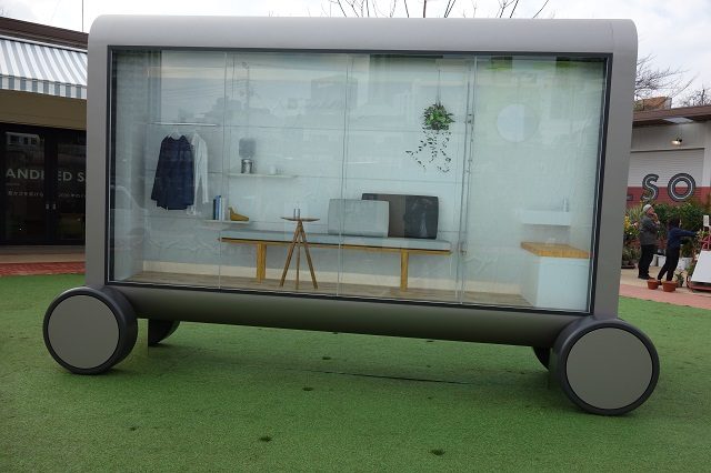 展示では、住空間をコンパクトで最小限なものに留めながらも、さまざまなサービスとつながる新たなライフスタイルを紹介。具体的には、4畳半の自動走行できる個室空間「EXSMALL」と、個室空間にないリビングやキッチン、ダイニング、浴室、ランドリー、イベントルーム等を完備する大型シェアスペース「VILLAGE」を提示している。