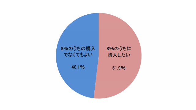 不動産情報サービスのアットホーム(東京都大田区)はこのほど、「消費税増税前の住宅購入意向」調査を実施し、その結果を発表した。「10月の消費税増税の前に住宅を購入したいか」を尋ねたところ、51.9%が「8%のうちに購入したい」と回答した。