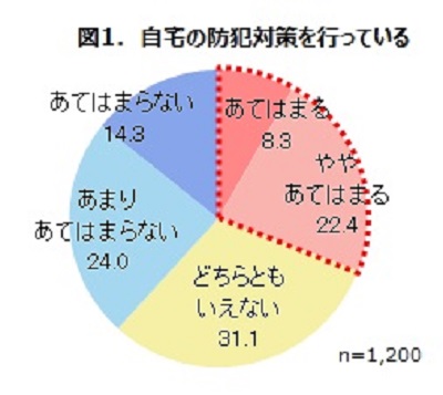 東京ガス(東京都港区)都市生活研究所は、防犯に関する意識調査の結果をまとめた都市生活レポート「あたりまえの毎日を続けるために~自宅の防犯に関する意識と実態~」を3月に発行した。それによると、「自宅の防犯対策を行っている(あてはまる、ややあてはまる)」と回答した人は約3割にとどまっていることがわかった。