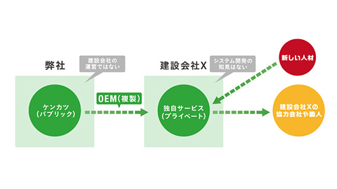 今回新たに追加された機能により、スキルや経歴などから職人にダイレクトにオファーができるようになった(スカウティング機能)。また、職人が空いた時間にLINEで仕事を探すこともできる(マッチング機能)。マッチング機能のデータベースは同社が独自に集めた内容のみで構成され、現時点で100社を超えるデータを保有しているという。今後、サービスを建設業だけでなく他業種へも展開していくとしている。