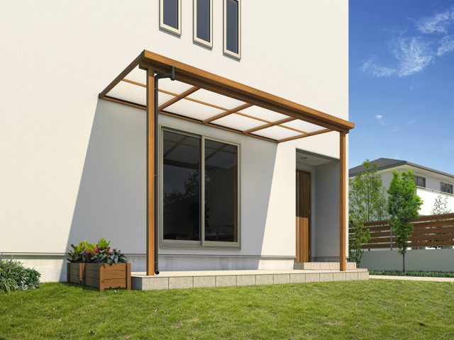 屋根デザイン・枠形状をシンプルにすることで、幅広い住宅に対応。屋根デザインはテラスタイプが2種類、パーゴラタイプが1種類で、各タイプに壁付け・壁寄せ・独立納まりを用意した。