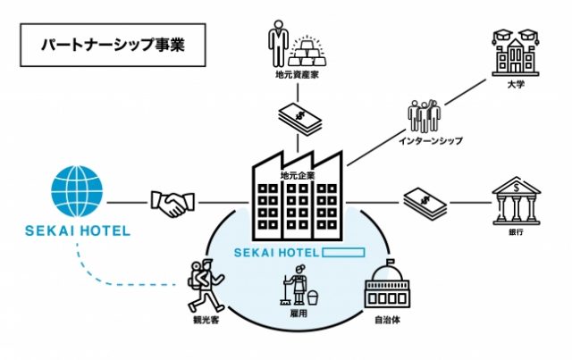 提携先には、SEKAI HOTELのライセンスを貸与し、ノウハウを生かし地域の活性化を推進する。初期段階では同社のスタッフが出向し、海外向けのPRや土産などの商品開発も主体となって行う。