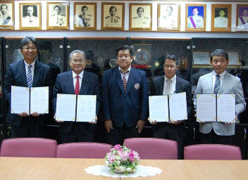 左から、TNM小谷社長、日東精工材木社長、GERD Peerayuth工学部長、同スティサック教授、JHS斉藤社長