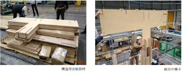 「ベニアハウス」は、柱や梁を構造用合板で構成した板組による商品。簡単かつ精確に建築施工できるもので、店舗や飲食店、休憩所といった本設建築物からイベント用施設などの仮設建築物まで活用可能。使用する合板部材をオフィス空間や店舗スペースなどの屋内に設置し、パーテーションとしても応用できる。