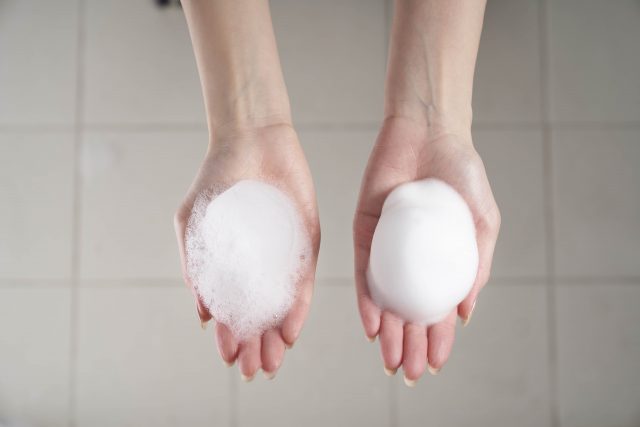 専用のトリートメント剤には、国産天然シルクから抽出した保湿成分「フィブロイン」を配合。これを独自の生成技術により、発泡倍率11倍に制御。手では泡立てることができないほど高密度でふんわりとした泡になるという。