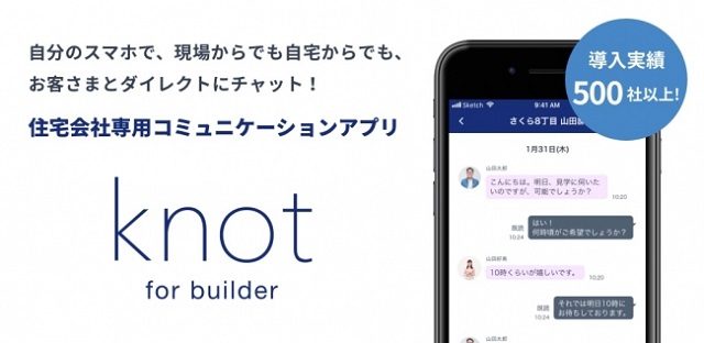 SOUSEI Technology(東京都港区)は4月5日、住宅会社専用チャットアプリ「knot for Builder(ノットフォービルダー)」をリリースした。
