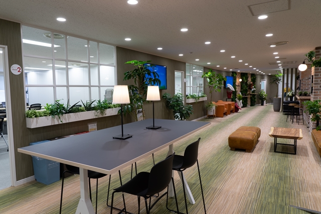 ラウンジスペース(写真上・下)。様々な業界の人が集い、学び、交流できる場を提供する
