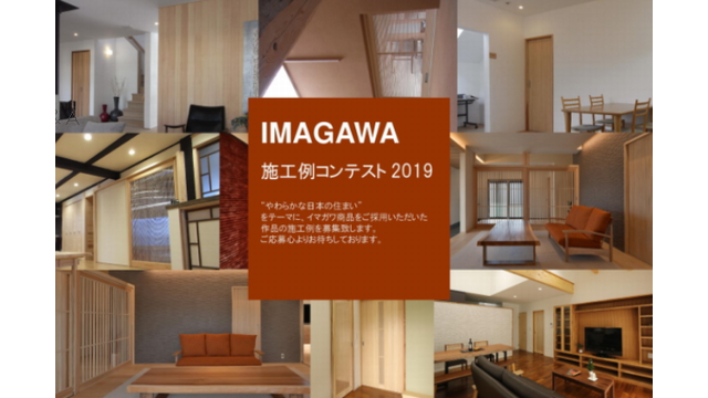 イマガワ(岡山県津山市)は、「やわらかな日本の住まい」をテーマに、同社商品や現行カタログ商品を採用した施工例を募集する「IMAGAWA施工例コンテスト 2019」を開催する。「手触りがやさしい自然素材や自然の安らぎが感じられる安心安全な上質空間へのこだわりが映えるような作品をより多くの人に知ってもらい、後世へと受け継いでいきたい」と同社。応募期間は6月末まで。
