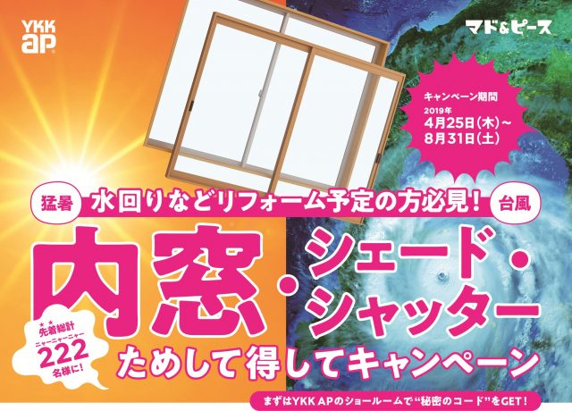 YKK AP(東京都千代田区)は、本格的な猛暑や台風の季節を迎える前の5月の大型連休から、いち早く窓への対策を提案するため、4月25日から8月31日までエンドユーザー向けに「ためして得してキャンペーン」を実施する。