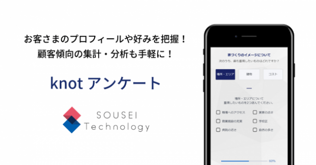 SOUSEI Technology(東京都港区)は4月22日、同社が展開するマイホームアプリ「knot」に新機能「knotアンケート」をリリースした。来店客向けのアンケートをウェブ上で行うことができるもので、利用料は無料。