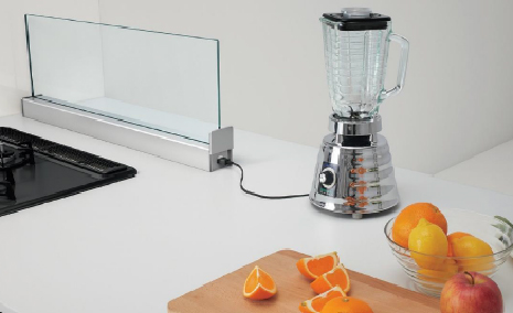キッチン側とダイニング側の両方からコンセントの使用が可能になるため、調理家電やタブレットを使用しながらの調理がしやすくなる。コンセントを使わないときは、スライド式カバーで隠すことで水はねを防ぐ。