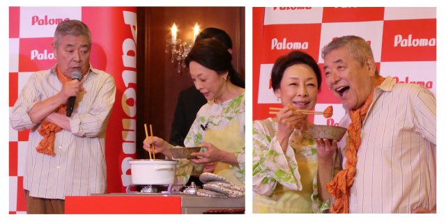5月15日に都内で開催された記者発表会には、俳優でタレントの中尾彬さん・池波志乃さん夫妻が登場。実演を交えながら新型コンロの使用感を語った。