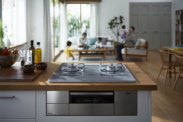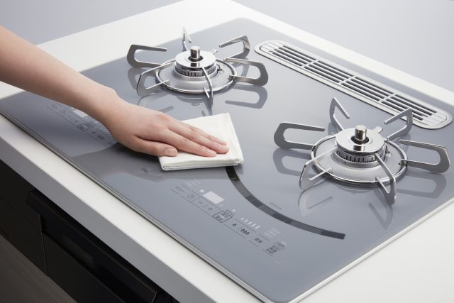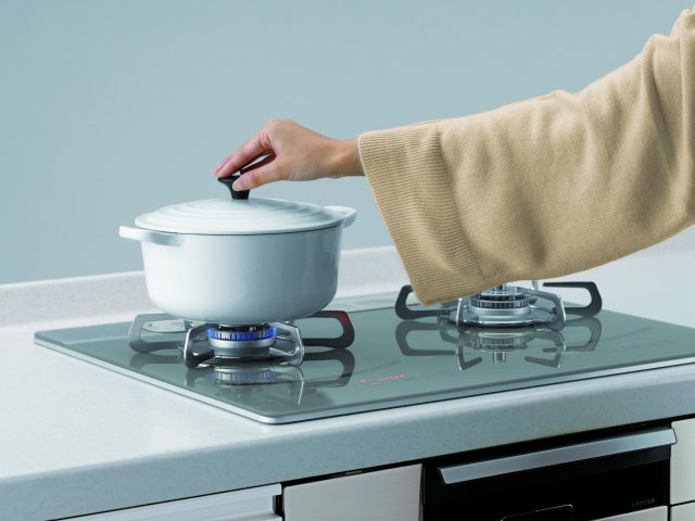 さらに、忙しい共働き世帯に向けて、家事負担を減らす機能を盛り込んだ。天面はフラットで操作も掃除もしやすい「タッチスイッチ」とし、点火の有無や火力をわかりやすく表示することでかがみこむ作業をなくした。