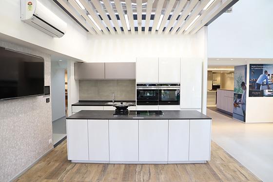 同社は、キッチン・バス・トイレなどの住宅設備・建材を展開するハウジング事業の海外展開を強化している。今回、住宅部材の提案を強化するため、建築家やインテリアデザイナーを中心にデベロッパーや一般顧客などを対象とした展示商談施設を新設。キッチン単体ではなく、空間訴求を行うことで多様なデザイン・機能・品質を新しい「暮らし」として実感できる。キッチン以外にも、内装ドア、外壁材、高齢者向けシャワーといった住宅部材も展示。日本で好評の全自動おそうじトイレ「アラウーノ」を体感できる。