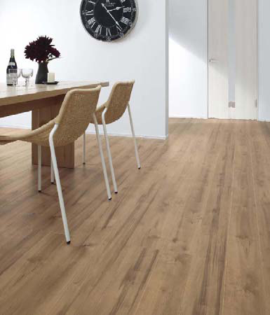 また、表面は樹脂シート製のため、傷や劣化を軽減しワックスがけも不要。基材には、へこみに強い硬質バッカーと環境に配慮した合板を使用した。