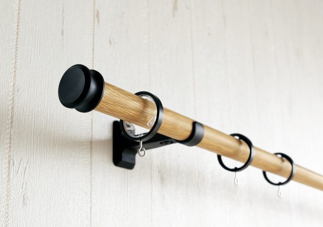 「ヴィンクス22」は、木目カラー4色に、白と黒のアイアン調パーツを合わせた装飾カーテンレール。ブルックリンテイストからラスティックな空間まで幅広く対応できるとする。