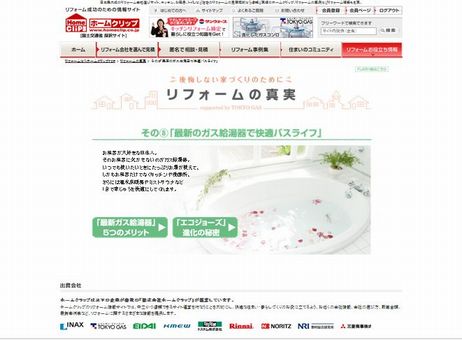 ホームクリップ(東京都中央区)は、最新のガス給湯器を紹介するコンテンツ「最新のガス給湯器で快適バスライフ」の掲載を開始した。