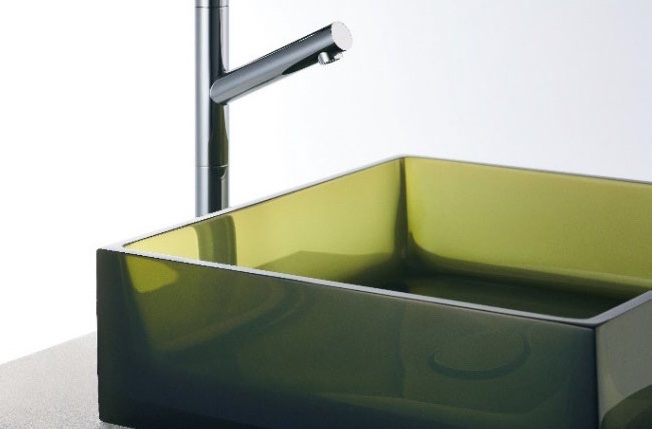 「Viu(ヴィヴ)」は、底面まで施釉したセラミックの洗面ボウルで、壁付けタイプ3サイズ、置き型タイプ、オーバーカウンタータイプを用意した。5万9000円〜。