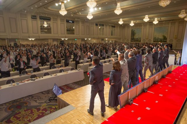 「皆でやる」を合言葉に、目標達成に向け恒例の決意表明で大会を締めくくった