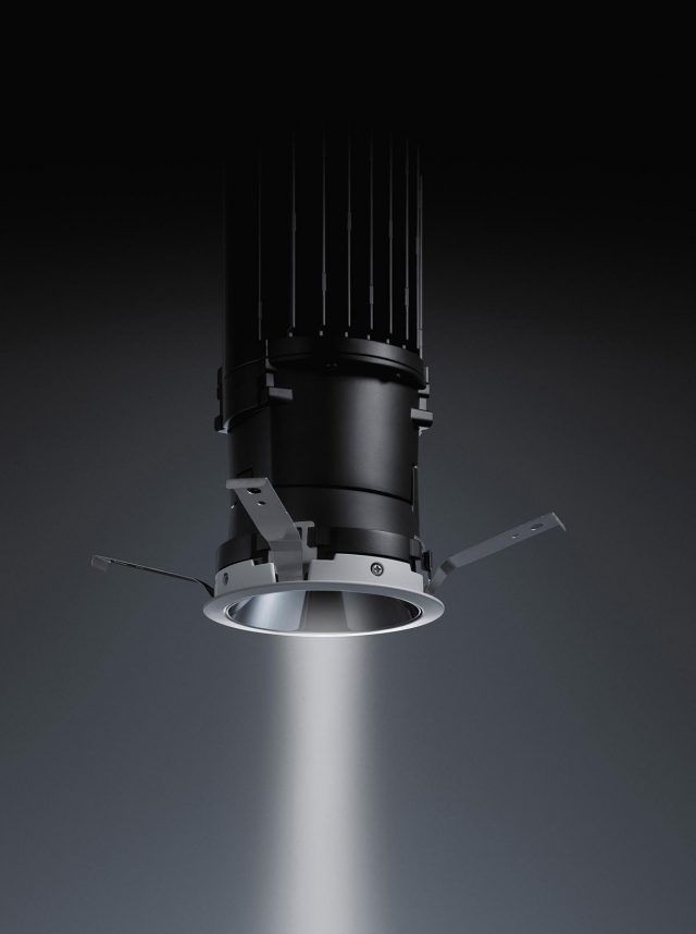 独自の放熱設計技術により、埋込穴直径100mmとコンパクトでありながら、500・400・300形の高出力を実現。さらに独自の光学設計技術により、ムラのない美しい光で空間を演出する。