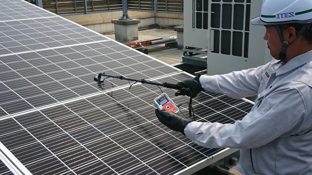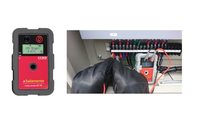 太陽光パネルが直列接続されたストリングのインピーダンス測定を行うことで、故障パネルの有無を判定できるストリングチェッカー。16万円。