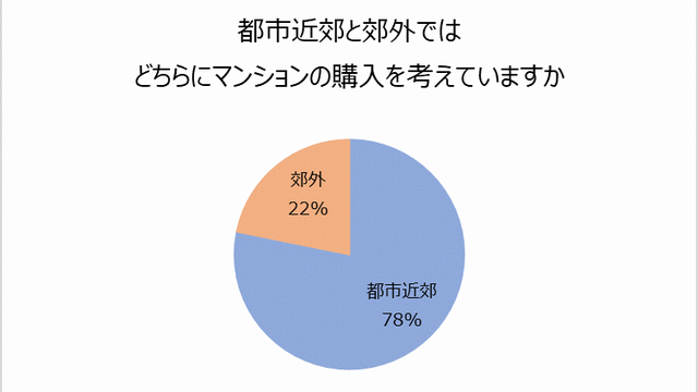 野村不動産(東京都新宿区)は、マンションの購入を希望している20代から50代のビジネスパーソン男女500人を対象に「マンション購入に関する調査」を実施し、その結果を発表した。都市近郊か郊外、どちらのマンションを購入しようと考えているか尋ねたところ、約8割が「都心近郊」(78%)と回答。理由としては、「交通の利便性があるから」(81.3%)が最も多く、次いで「資産価値が落ちにくいから」(53.7%)となった。