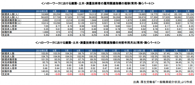 人材紹介事業を行うヒューマンタッチ(東京都新宿区)は7月26日、建設業界の人材市場に関する最新の公的データをまとめた『ヒューマンタッチ総研~Monthly Report 2019年7月』を発表した。