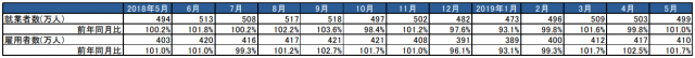総務省・厚生労働省が6月28日公表した建設業界の最新雇用関連データによると、建設業の就業者数は499万人(前年同月比101.0%)で、2カ月ぶりに前年同月を上回った。ハローワークにおける新規求人数は6万8831人(同97.9%)と減少した。