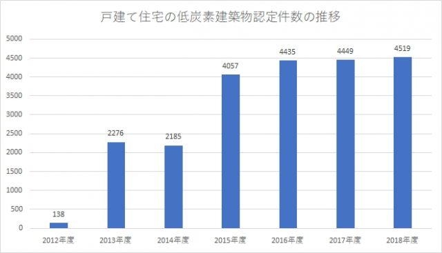 国土交通省が7月29日に発表した2018年4月~2019年3月の低炭素建築物新築等計画の認定件数は、戸建て住宅が4519件、共同住宅が1309件だった。戸建て住宅の年間認定件数は過去最高を記録した。