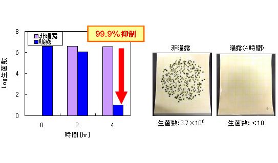 Cladosporium(クロカビ):4時間で99.9%抑制 報告書No.:E02-110801IN-01