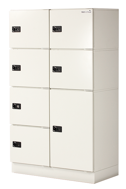 収納可能サイズは140(大)と100(小)の2タイプで、世帯数に合わせて大小の宅配ボックスをブロックのように組み合わせて設置することができる。電気を使わないカギ方式を採用。 大(W450xH700xD450)が6万8000円、小(W450xH350xD450)が5万5000円。