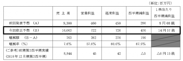 業績予想修正の理由として、断熱材施工が「アクアフォーム」の商品力および施工力を生かした受注活動により、当初の予想を超える水準で推移していることを挙げた。利益についても、増収による効果およびイソシアネート原料価格の低下により、予想を大きく上回る見通し。
